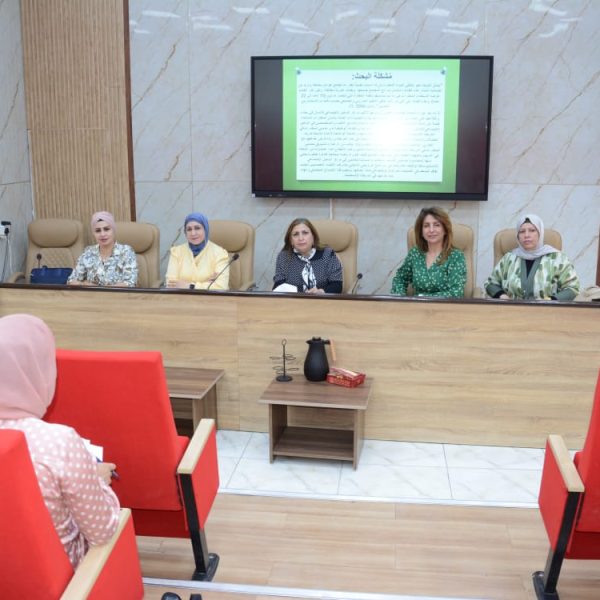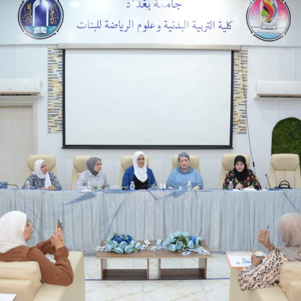 The Department of Graduate Studies at the College of Physical Education and Sports Sciences for Women, University of Baghdad, under the supervision and leadership of its Dean, Prof. Dr. Fatima Abd Malih, continues to organize weekly seminar sessions for PhD and Master’s students. These seminars are held at a rate of four sessions per week, with each session comprising a chairperson and four members who discuss the research work of four students—two from the PhD level and two from the Master’s level.