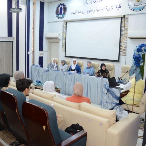 The Department of Graduate Studies at the College of Physical Education and Sports Sciences for Women, University of Baghdad, under the supervision and leadership of its Dean, Prof. Dr. Fatima Abd Malih, continues to organize weekly seminar sessions for PhD and Master’s students. These seminars are held at a rate of four sessions per week, with each session comprising a chairperson and four members who discuss the research work of four students—two from the PhD level and two from the Master’s level.