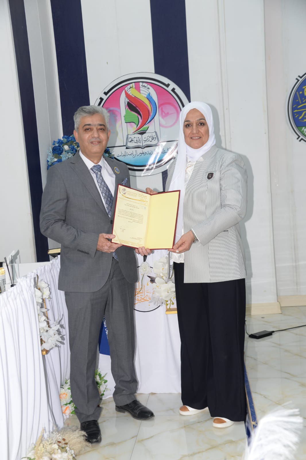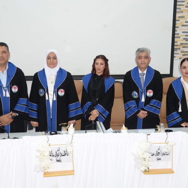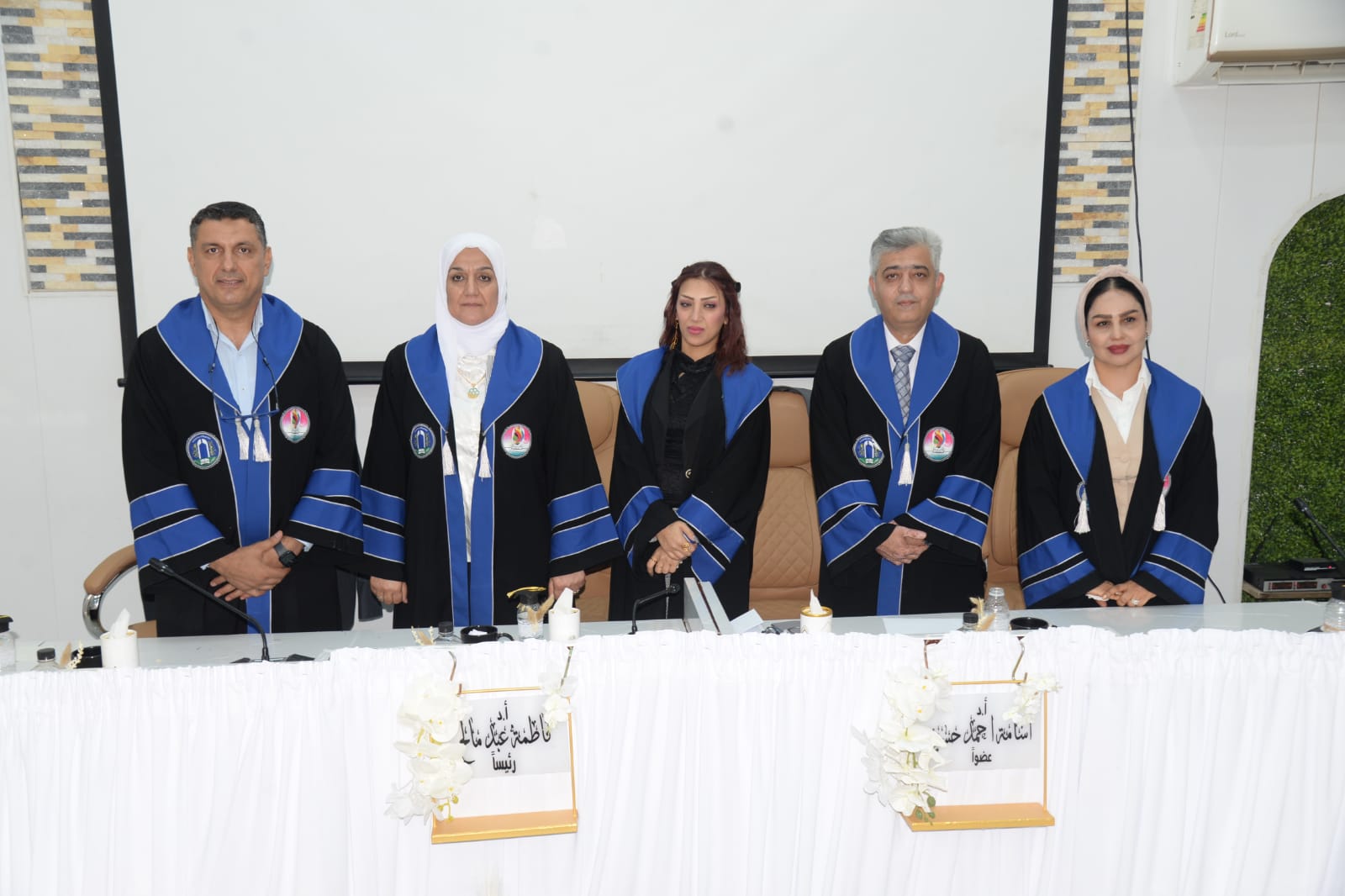 The examining committee also included: Asst. Prof. Dr. Ishraq Ghalib Ouda – Supervisor, Prof. Dr. Osama Ahmed Hussein – External Member (University of Baghdad), Prof. Dr. Mustafa Hassan Abdul Karim – External Member (Al-Mustansiriyah University).