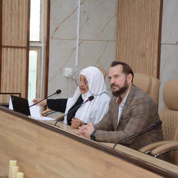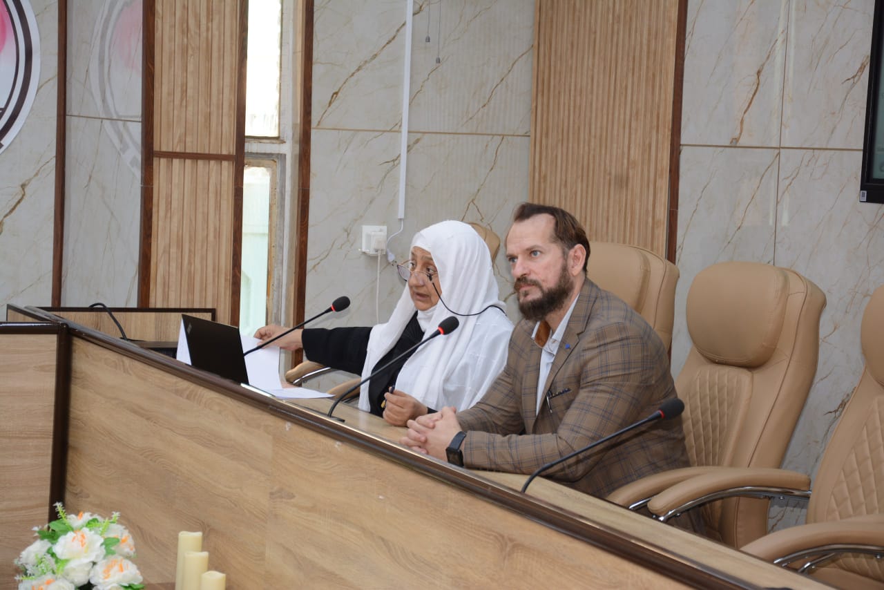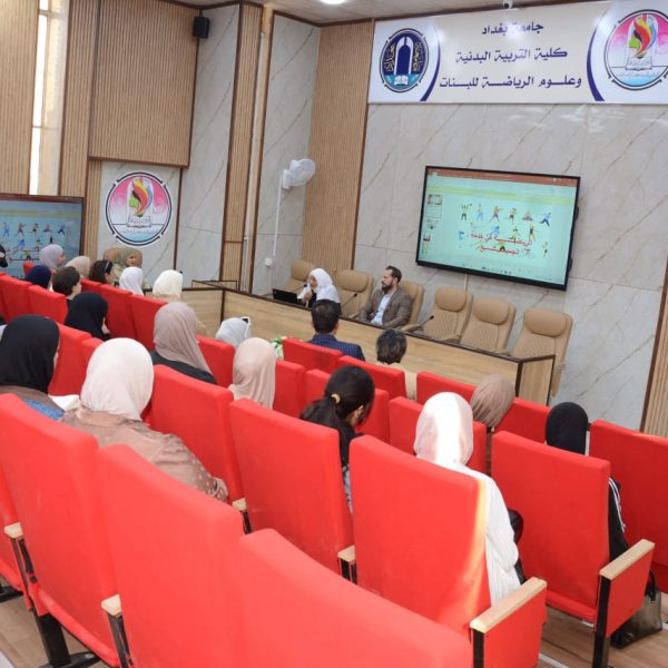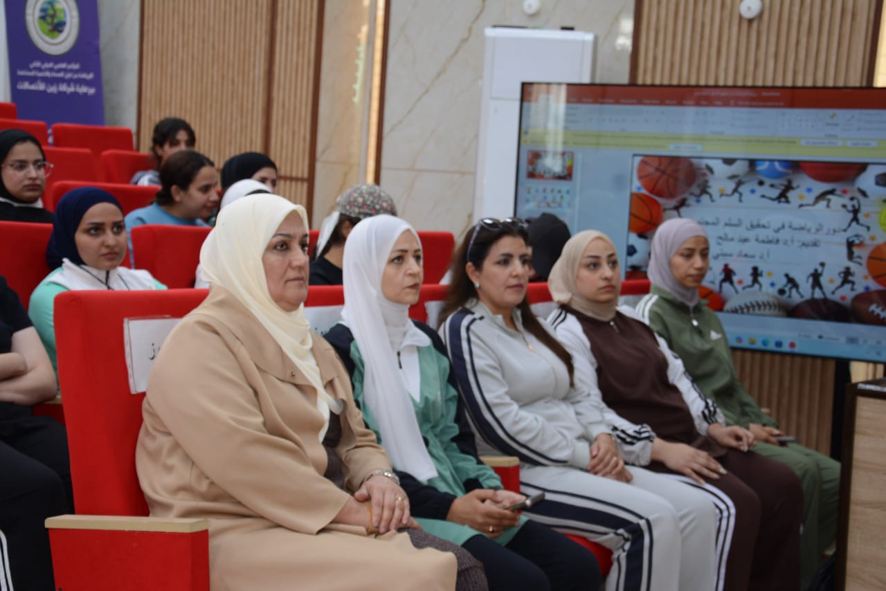 The College of Physical Education and Sports Sciences for Women at the University of Baghdad, under the patronage of its Dean, Prof. Fatima Abd Malih, hosted a delegation from the Ministry of Youth and Sports / Directorate of Studies and Development for Youth Leadership. The workshop was held in cooperation with the University Psychological Counseling Unit and carried the title (The Role of Sports in Achieving Community Peace). Prof. Suaad Al-Sabti presented the session.