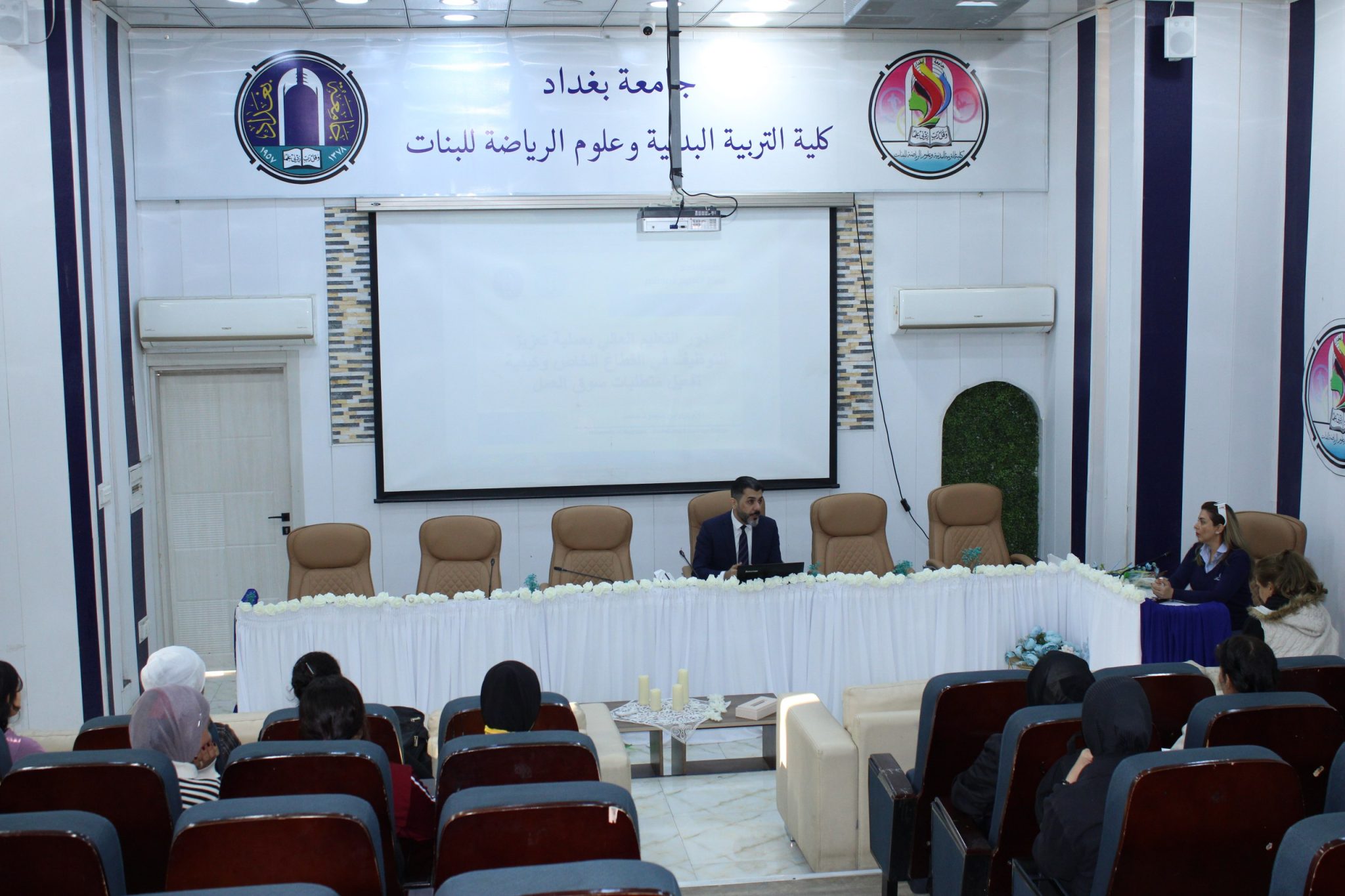Under the patronage of the Dean, Prof. Dr Fatima Abd Malih, the Career Development and Employment Unit at the College of Physical Education and Sport Sciences for Women, University of Baghdad, hosted Asst. Prof. Dr. Aws Mahmood Ahmed from the Center for Continuing Education at the University of Baghdad, under the supervision of Unit Head Safia Ihsan Kamil, to deliver a scientific workshop titled (The Role of Higher Education in Supporting Employment in the Private Sector).