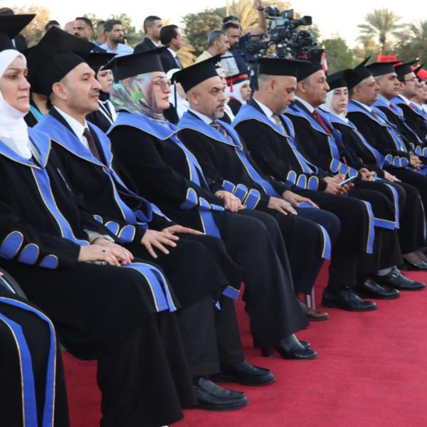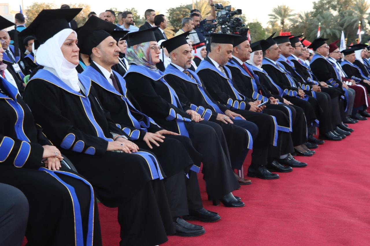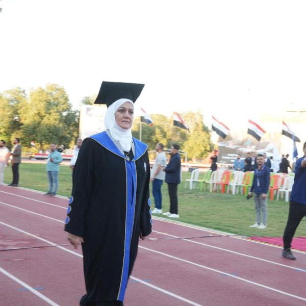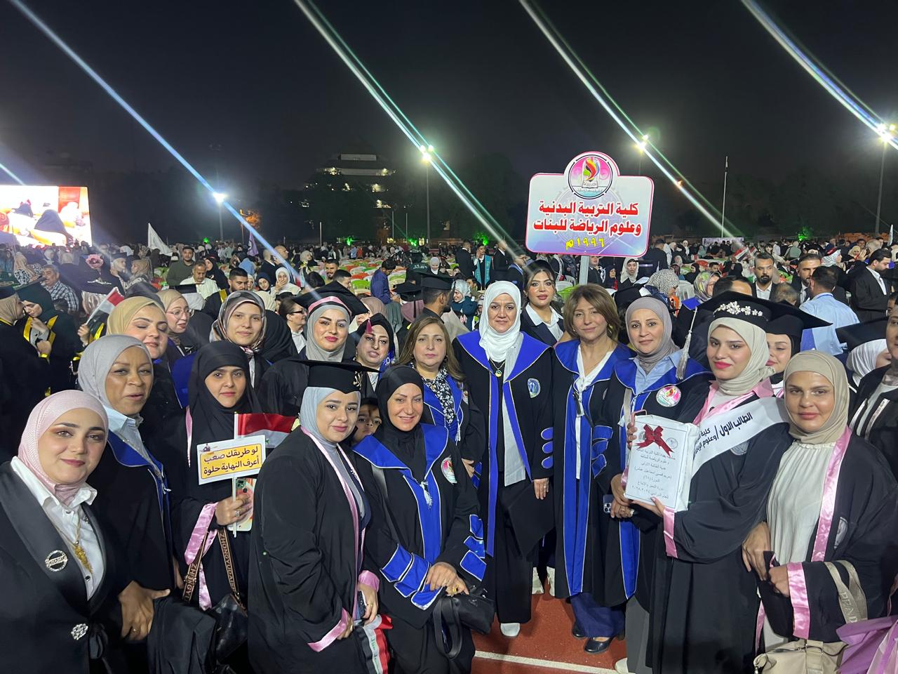 The College of Physical Education and Sports Sciences for Women – University of Baghdad participated in the central graduation ceremony held under the theme (Cohort of Creativity and Excellence). The event was organized by the University of Baghdad at the College of Physical Education and Sports Sciences and attended by the Minister of Higher Education and Scientific Research, Prof. Dr. Naeem Al-Aboudi.